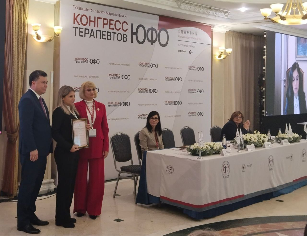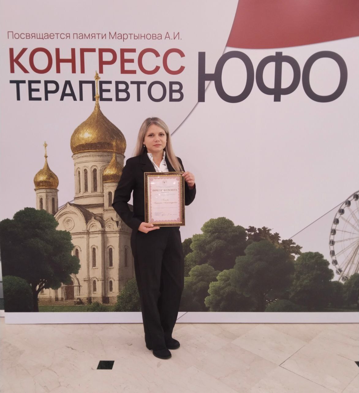 3 октября в г. Ростове-на-Дону состоялся Конгресс терапевтов Южного Федерального округа, который был посвящен актуальным вопросам современной терапии, аспектам применения клинических рекомендаций в повседневной практике врача-терапевта, совершенствованию подходов к профилактике и диспансерному наблюдению. Программа форума охватила широкий спектр тем, отражающих ключевые направления терапии, включая диагностику и лечение хронических неинфекционных заболеваний, улучшение качества жизни пациентов и персонализированный подход к их ведению. На Конгрессе прошло награждение почетными грамотами врачей-терапевтов. Поздравляем с наградой - почетной грамотой "За доблестный труд во благо жизни пациентов" врача-терапевта поликлинического отделения №2 нашей больницы Татьяну Александровну Попову!Желаем больших успехов в работе!!